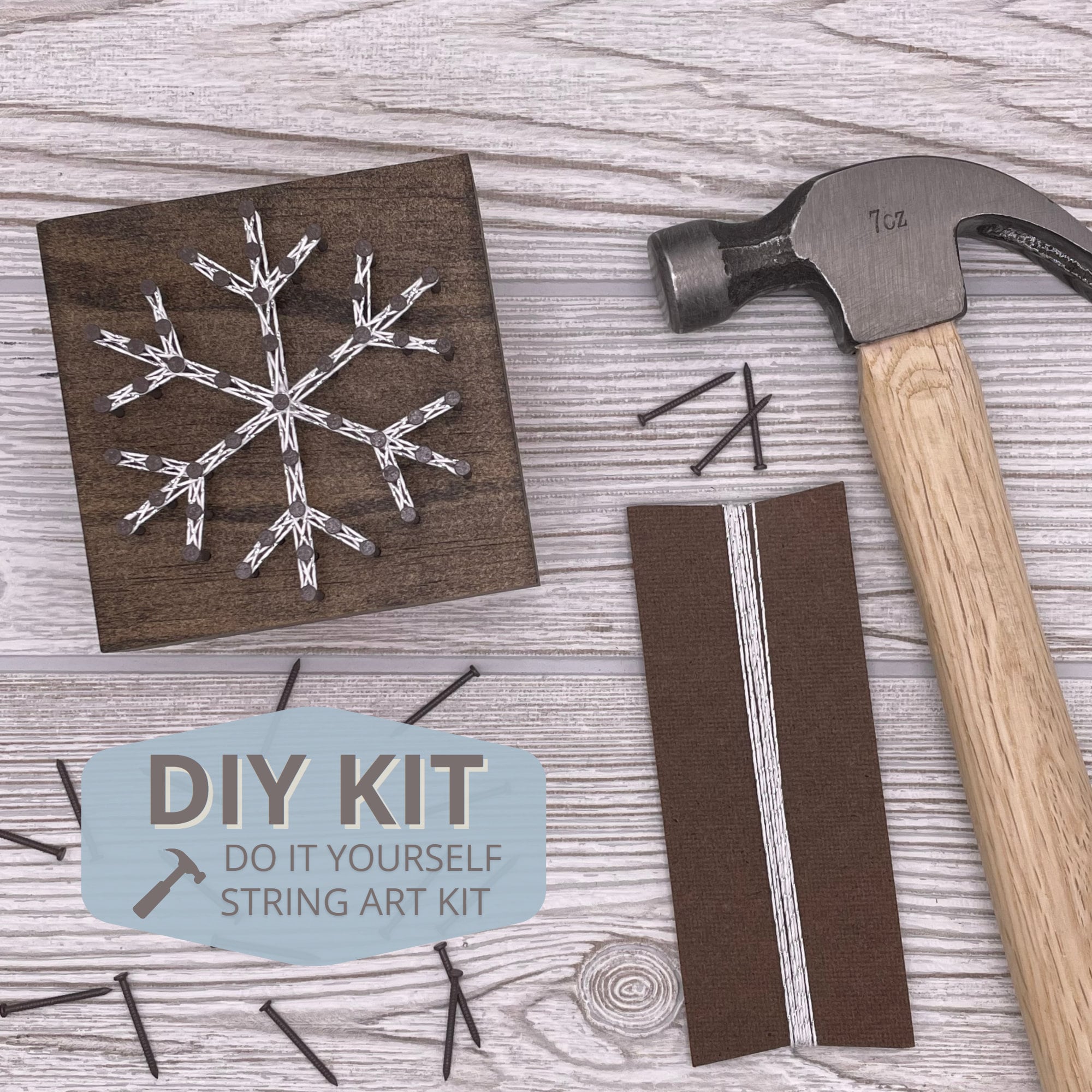 Diy String And Nail Art Snowflake Wood Block Kit 3 5x3 5 Etsy